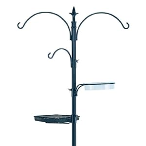This kit contains everything you need to set up a bird feeding station: Decorative twin hook with fleur-de-lys finial, bird bath supporting ring and bird bath, small feeder hook, mesh feeder tray, and heavy duty feeder pole (bird feeders not included).